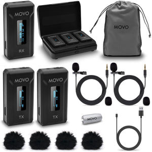 Capture broadcast-quality audio for two with Movo's WMX-2-DUO wireless system.