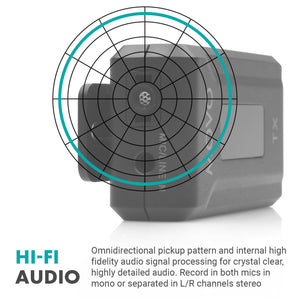 • LIGHTWEIGHT TRANSMITTER MICROPHONES: The transmitters feature highly-sensitive built-in omnidirectional microphones, allowing you to clip the mics on and record broadcast-quality audio for two voices in any setting