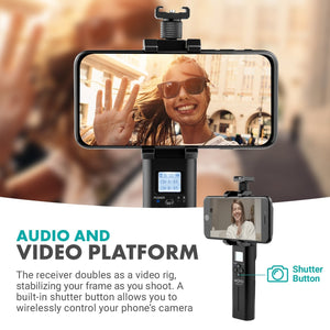 • WIRELESS LAV MIC RECEIVER: Handheld receiver doubles as filming stabilizer for smartphone, connects to your device's 3.5mm TRRS port