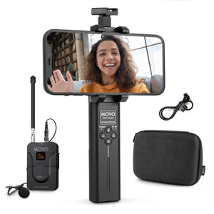 The Movo WMX-7-SP is a 12-channel wireless VHF radio system designed to give your smartphone videos studio-grade sound. Including a wireless smartphone receiver, lavalier microphone, and a bodypack transmitter, the WMX-7-SP allows you to record crisp audio while shooting handheld footage.