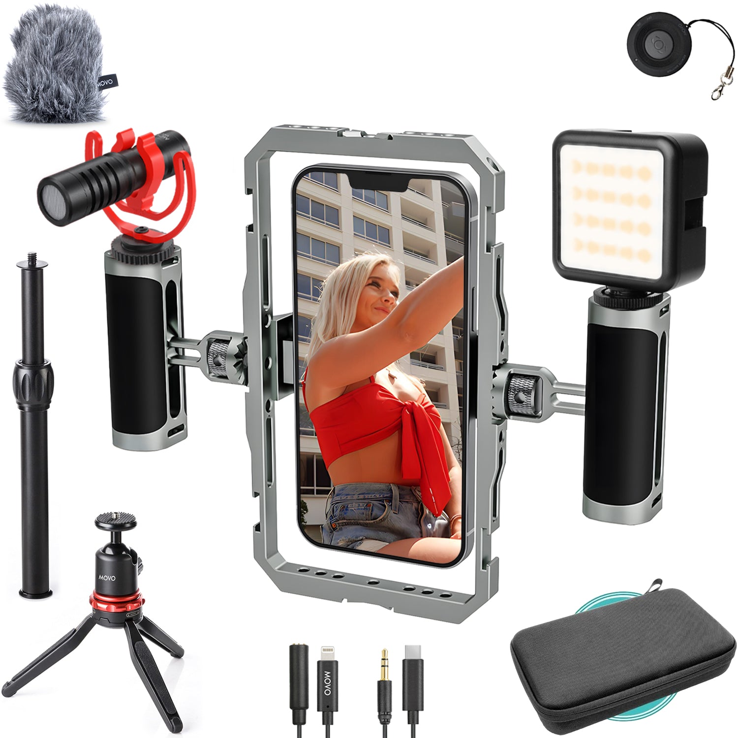 Deciding which smartphone accessory bundle is right for you depends on your exact filming needs. If you’re looking to use your smartphone forvlogging or other major video projects, you’ll definitely want a smartphone video kit that includes a tripod, which will help stabilize your phone to keep the shot steady and looking professional.