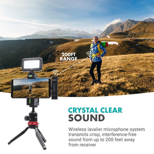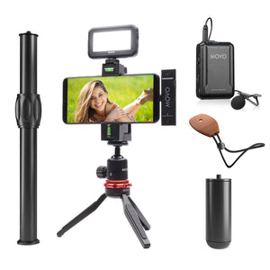 Get professional sound, picture, and lighting for your smartphone videos with the Movo iVlog UC. This all-inclusive bundle features a wireless lavalier microphone compatible with Android devices, an LED light, a smartphone hand rig, and a collapsible tripod.