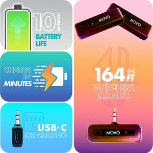 Bring high quality wireless audio to your next video shoot with Movo Wireless Mini system. Ultra compact and portable, the Wireless Mini connects to any camera or recorder with a 3.5mm line input.