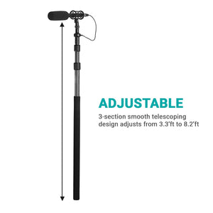 This adjustable carbon-fiber microphone boom pole extends from 3.3' to 8.2', perfect for audio recording for videos in various production settings