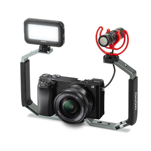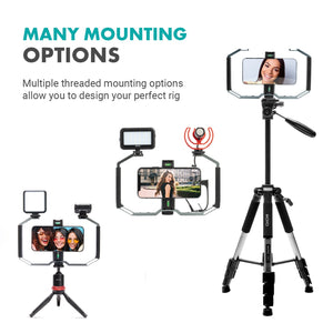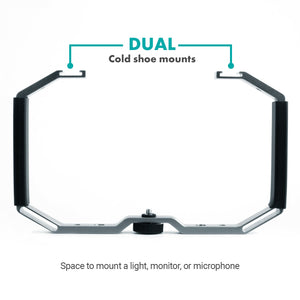 Get enhanced control of your shots with a stable dual handle video cage rig for mirrorless cameras, DSLRs, smartphone holders and more.