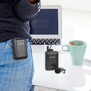 Simply connect the receiver to your device, clip the transmitter to your belt, clip the lav mic to your shirt, and you're ready to go.