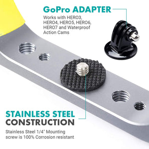 Take jaw-dropping underwater photos on your next dive trip with this all-inclusive bundle! The DiveRig3 is the perfect two-handed stabilizer for shooting video while snorkeling or scuba diving. Rubberized hand grips and a wrist leash make it easy to hold on to, while the durable aluminum construction shrugs off drops and bumps with ease. Dual cold shoe mounts allow you to interface a variety of accessories, and the central gimbal works great with a wide range of underwater cameras, including the GoPro Hero series.